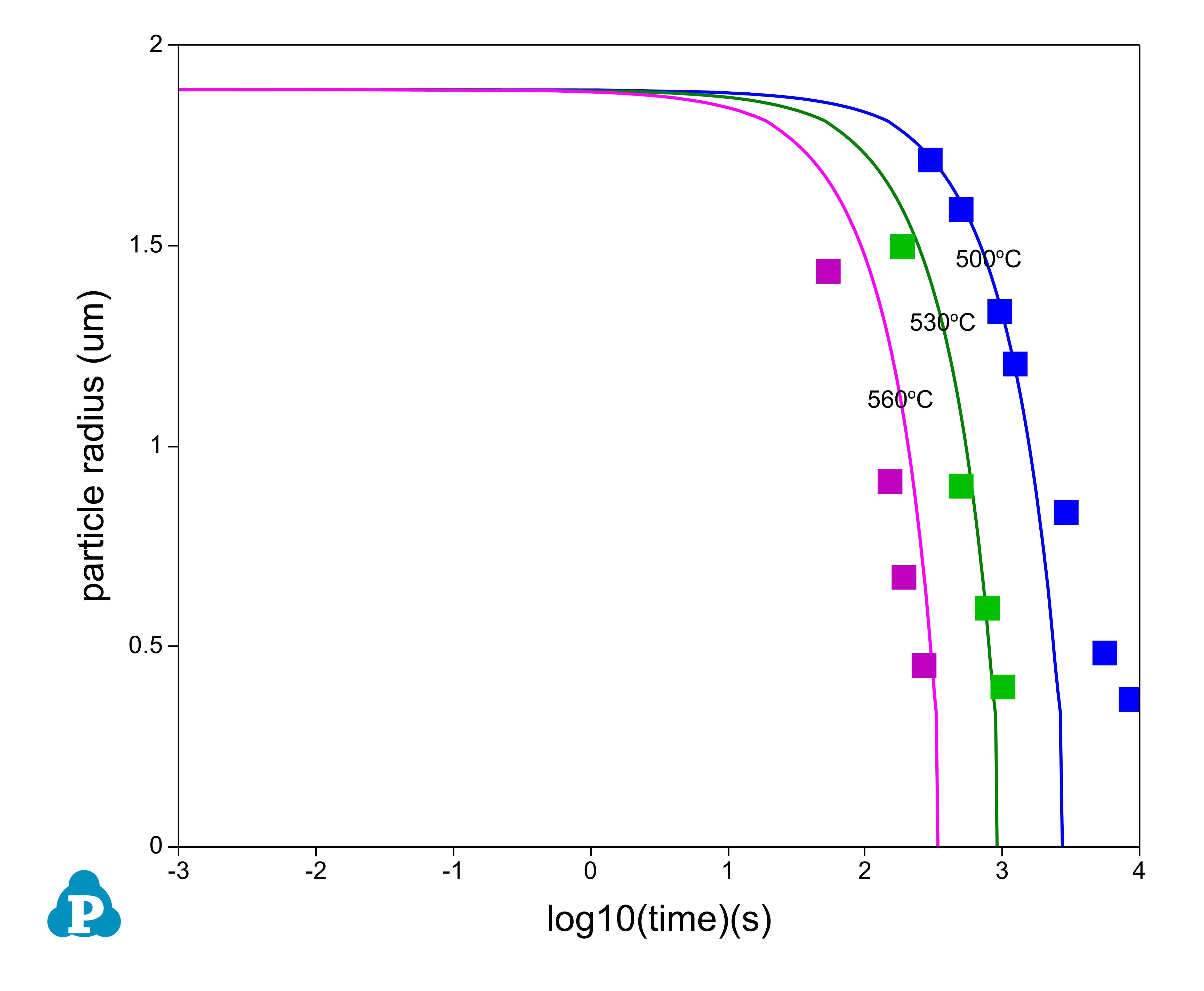 The PanEvolution module was developed for the simulation of precipitation kinetics of multi-component alloys. It has been seamlessly integrated with the thermodynamic calculation engine of Pandat software, and has been used to simulate the evolution of microstructure and the corresponding mechanical property responses to heat treatment of 2xxx, 6xxx and 7xxx series of aluminum alloys [2011Cao]. Below shows an example simulation performed for the Al-2.3Mg-6.1Zn (wt%) alloy aged at 160 °C for 1000 hours. The simulated particle size and yield strength evolution with time are compared with experimental data as shown in Figure 5
