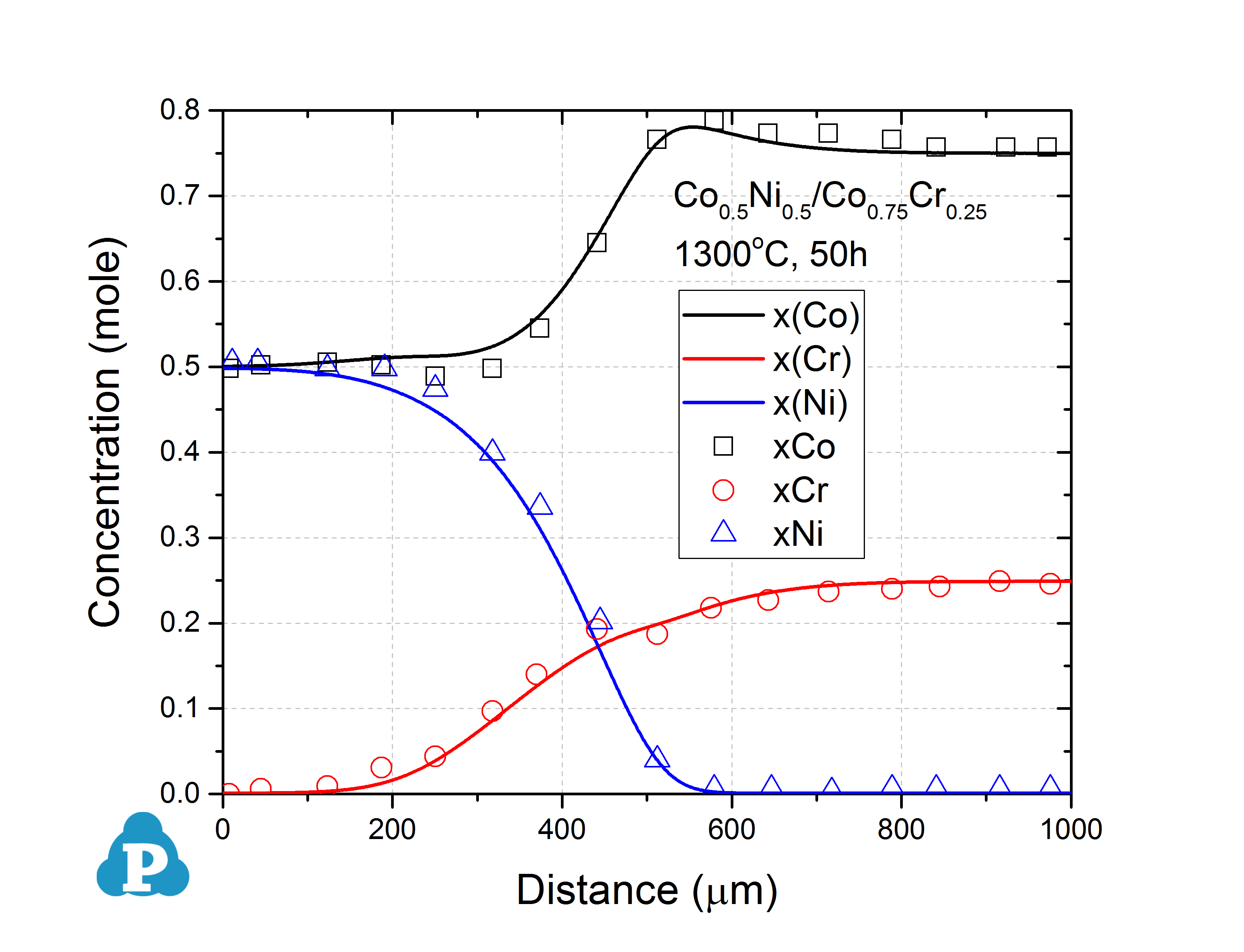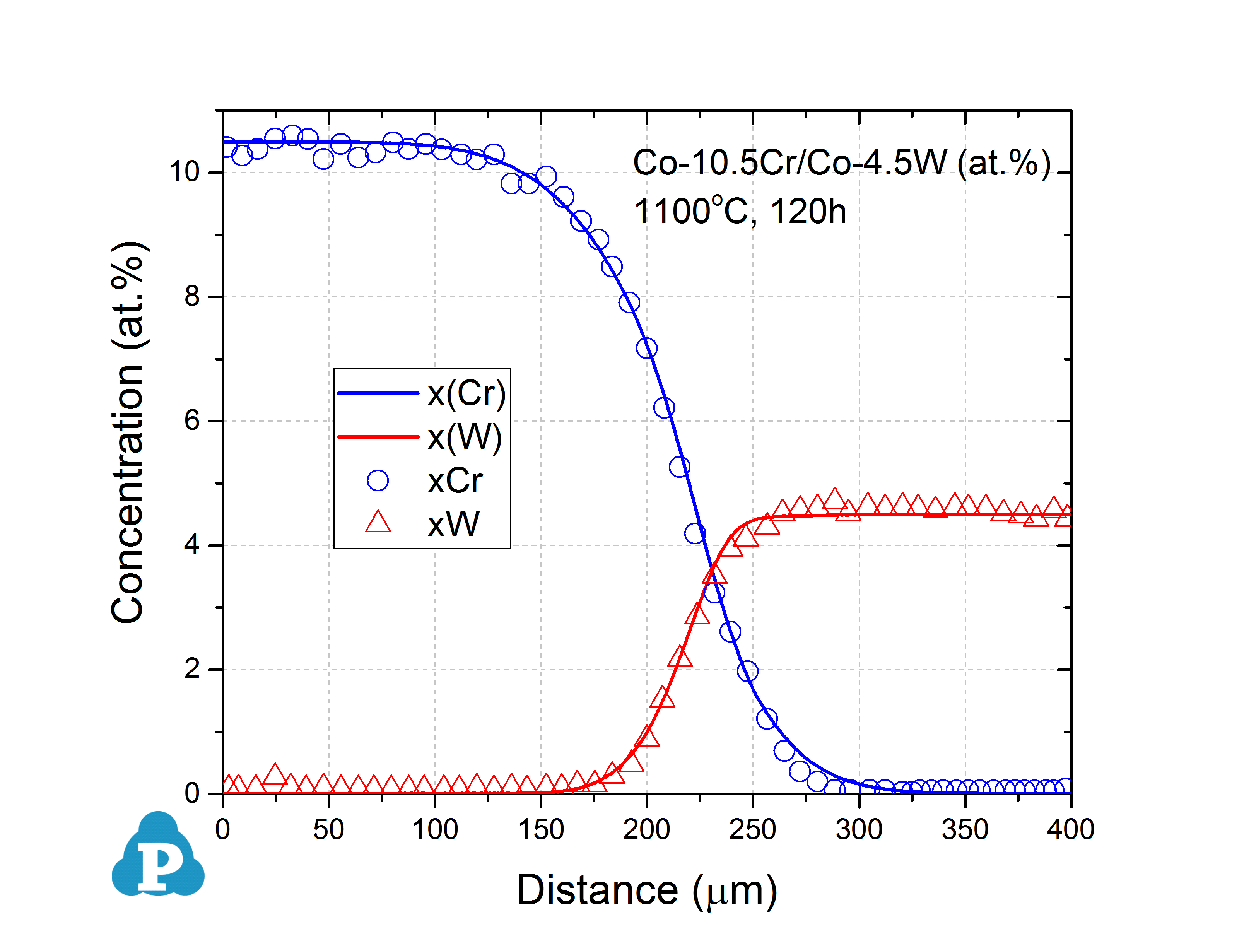 The simulated concentration profiles of a series of Co-based alloys are used to validate the current mobility database for Co-based alloys. A few examples of such simulation are shown below.
