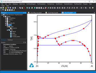 Here we use Al-Zn phase diagram as an example to illustrate how to add experimental data on a calculated phase diagram. In Pandat, there are two easy ways for users to superimpose the external data on the results from Pandat calculations for comparison.