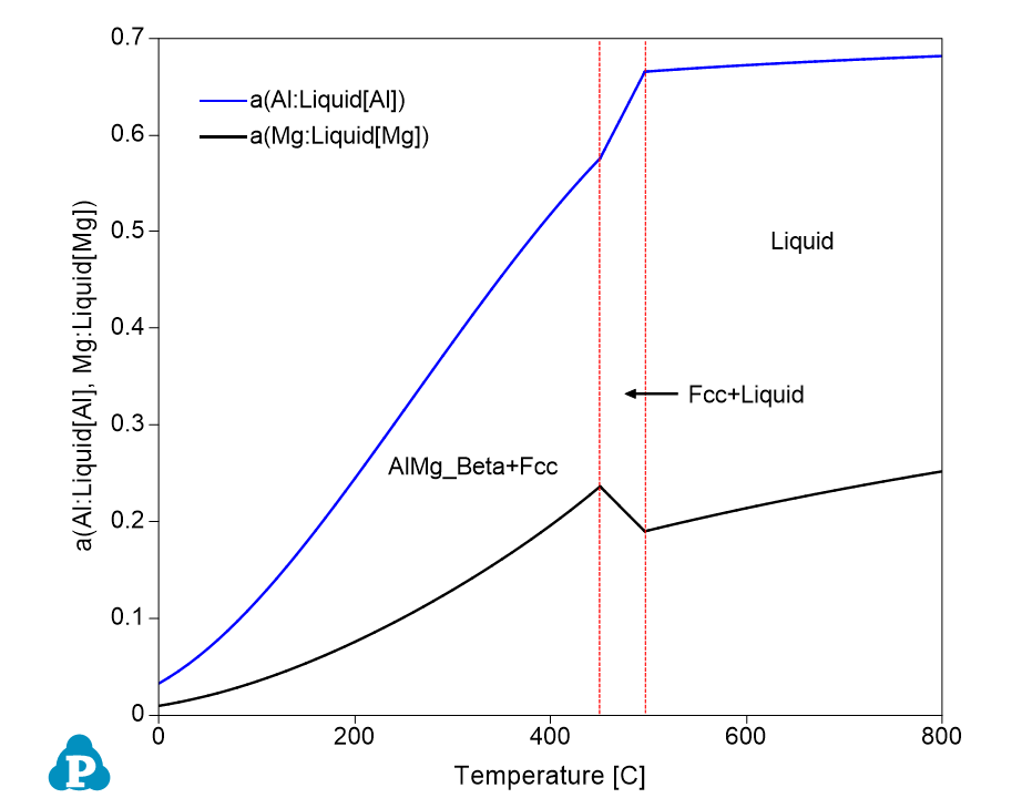 - Figure 1.11.3 shows the activities of Al and Mg as a function of temperature using Liquid Al and Liquid Mg as reference states;