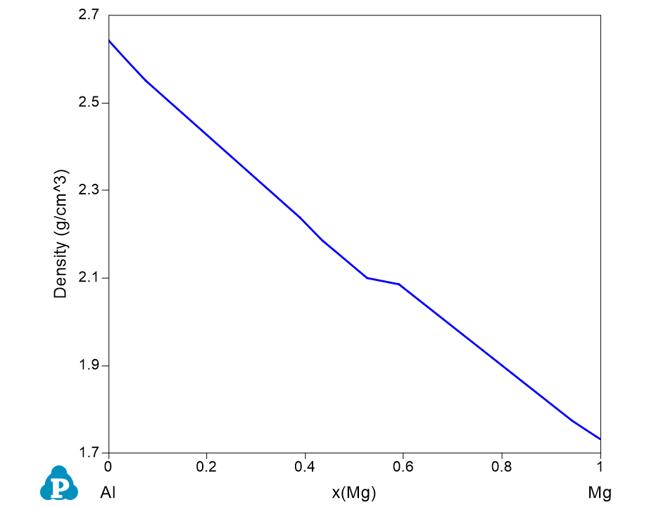 Figure 1.12.4: Calculated density from pure Al to pure Mg in Al-Mg binary at 300 °C