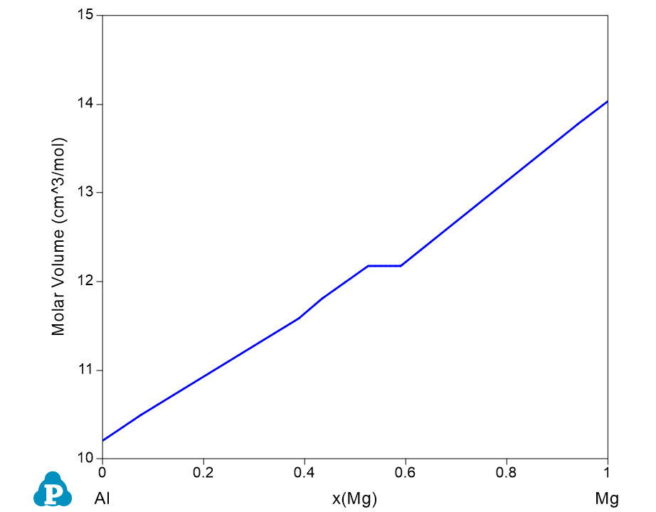 - Figure 1.12.3 shows the calculated molar volume which increases with the increase of Mg content;