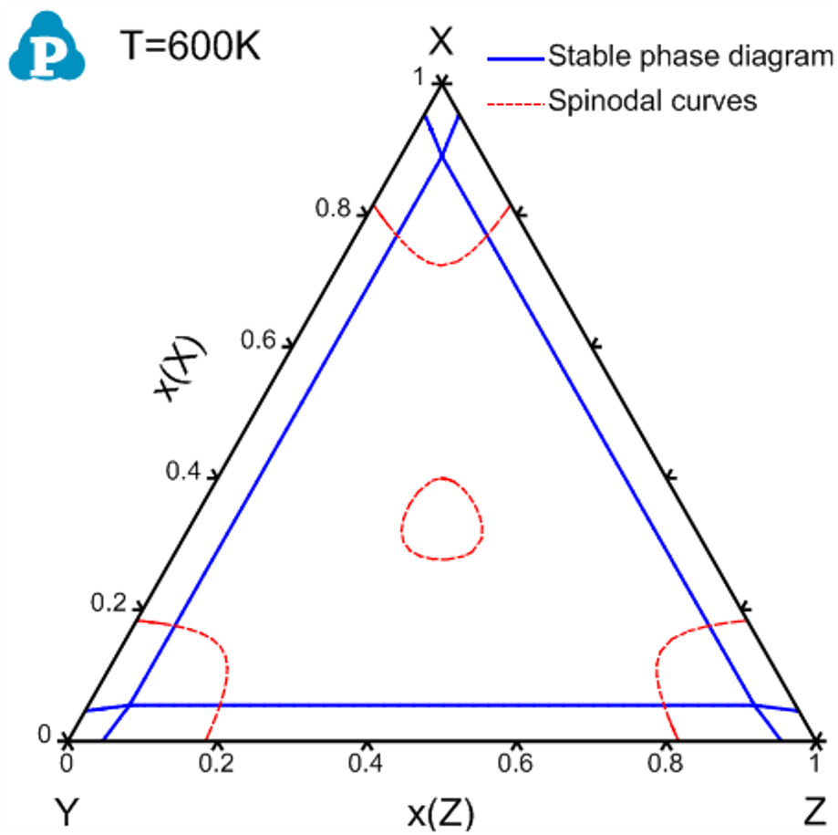 Example #2: Spinodal curve of Fcc phase in the X-Y-Z ternary system