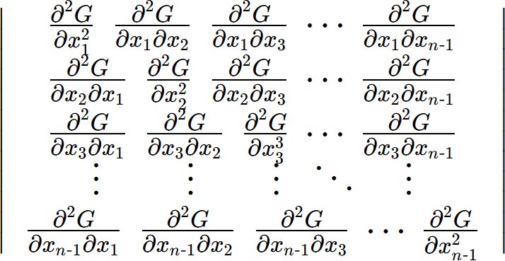 A Spinodal curve is where the determinant of the Hessian of Gibbs free energy with respect to composition is zero. For a phase with c-components, above condition is expressed as