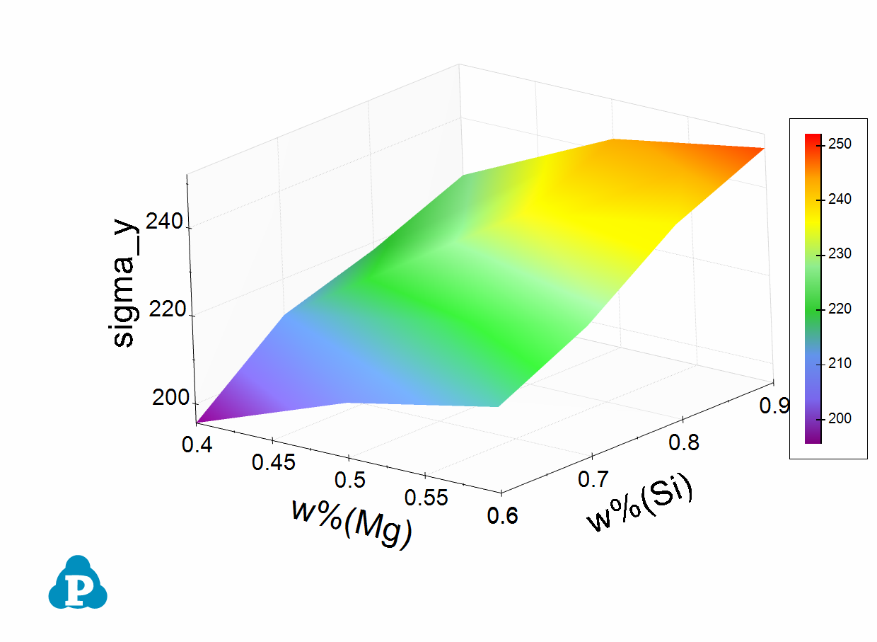 In this example, we will demonstrate how to find the peak yield strength of the AA6005 alloy with varying both composition and heat-treatment temperature.