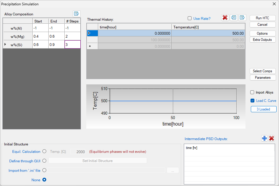 Figure 10.23: Dialog to setup compositional space and thermal history for precipitation HTC