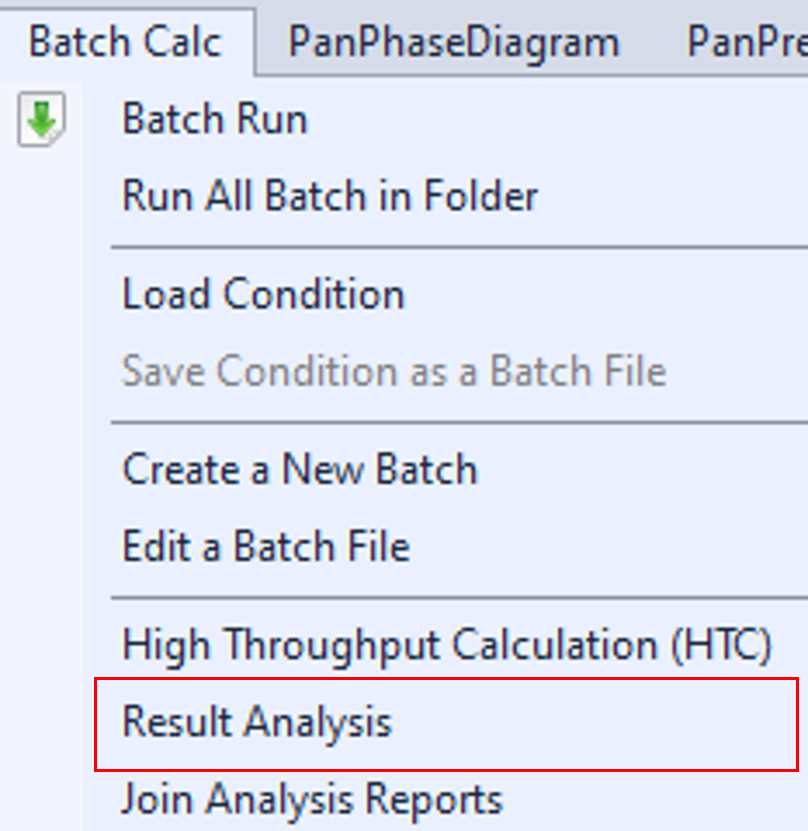 Figure 10.15: “Result Analysis” function under the “Batch Calc” menu