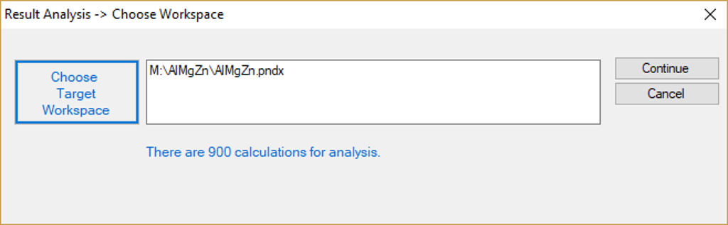 Figure 10.16: “Result Analysis” popup dialog to choose target workspace