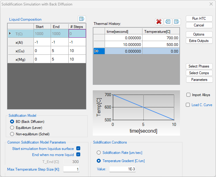 , then use the output file as a template to revise the cooling curve. Besides the cooling rate, the solidification rate or temperature gradient is also needed to be defined.