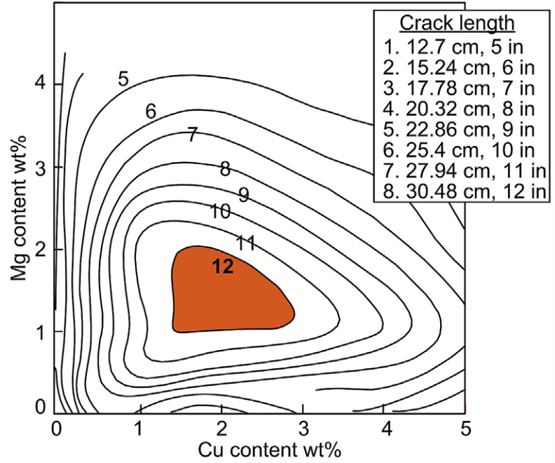 Figure 5.3.8: Al-Cu-Mg crack susceptibility map with cooling rate of 20 K/s