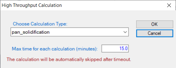 , select the available alloys: Al alloys; - Start HTC function through menu "Batch Calc → High Throughput Calculation (HTC)";
