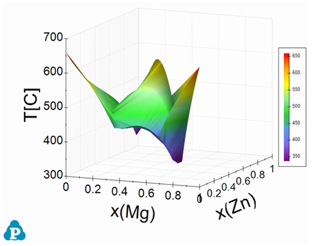 , a 3D liquidus surface graph will then be generated in the Pandat main display window as shown in Figure 2.24.