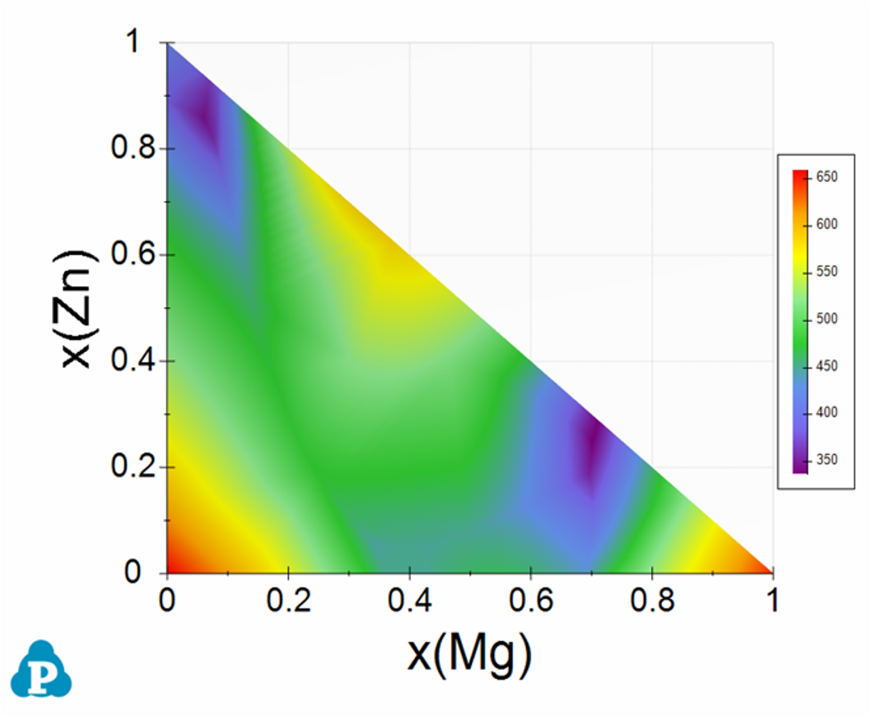 Figure 2.23: A new color map graph created from selected columns in the isotherm table from the liquidus projection calculation