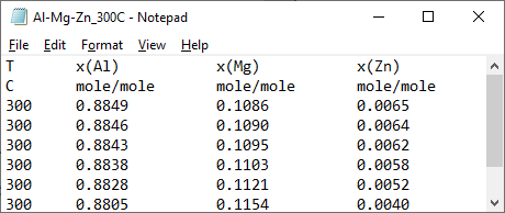 - Import Table from File User can import a customized table from an existing file. This can be done by choosing the command located on the menus: "Table → Import Table from File", or right click the mouse on the Table node and choose "Import Table from File" from the popup menu as shown in Figure 2.18. Pandat can read data files with ".dat" and ".txt" as default file extension names.Figure 2.19 shows a typical data file for importing into Pandat. Different columns are separated by Tabs. The first row defines the data name for each column. The second row defines the unit for the data in each column and the following rows define the data values. If the column names are the same as those in the default table, the second row (the unit row) can be blank and Pandat will use the same units as those in the default table.