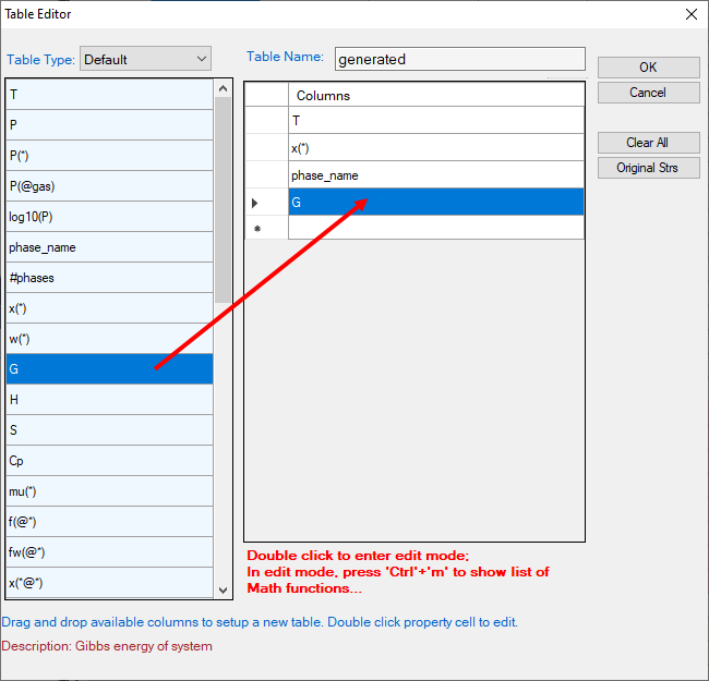 , create a new graph for the selected properties. Use the key and the left button of the mouse to select multiple columns in the table as shown in Figure 2.20. The first selected column is set as the abscissa (x-axis), and the other columns are set to be the ordinate (y-axis). After click on the button