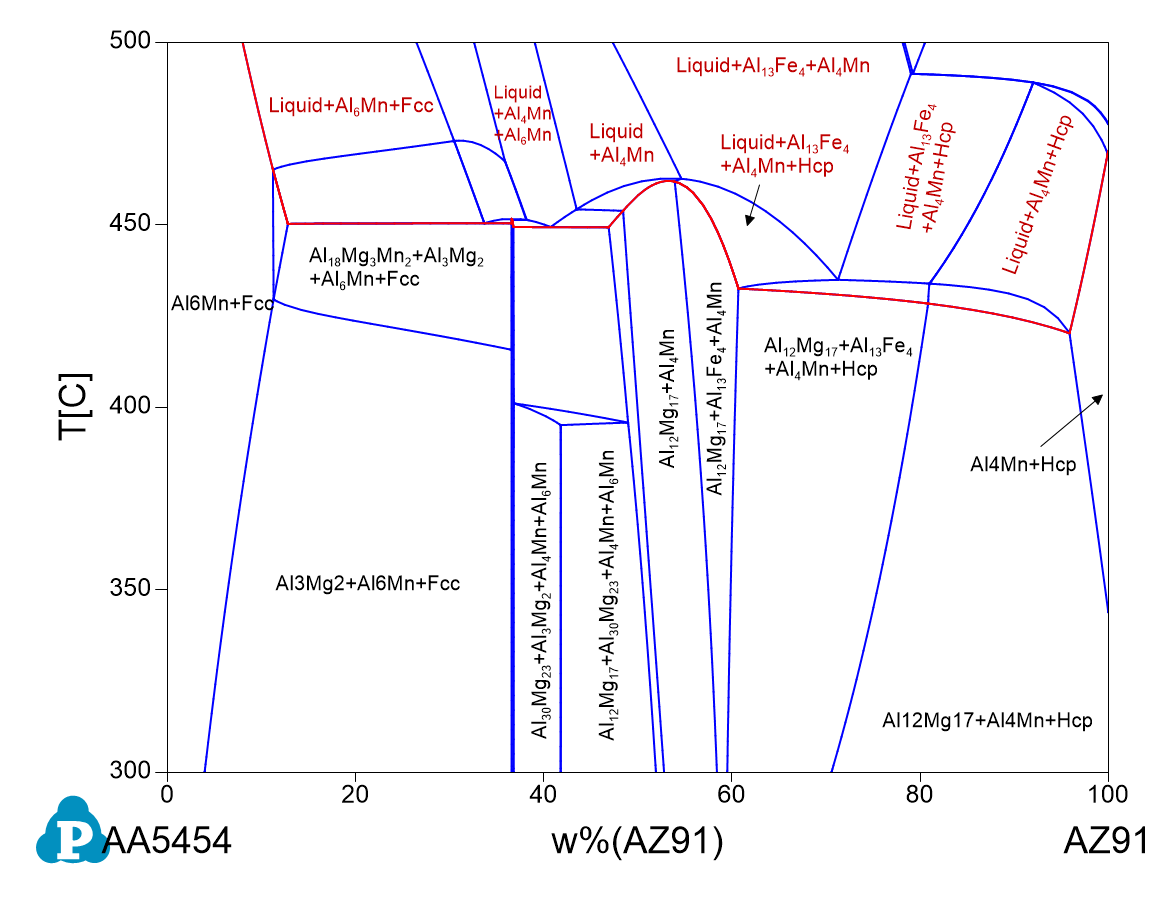 - The obtained phase diagram is shown in Figure 1.29.3 The weight percent of the material AZ91 is used as X-axis. This figure is similar to the Figure 1.25.3 in Example 1.25 where the weight percent of element Mg is used as X-axis.