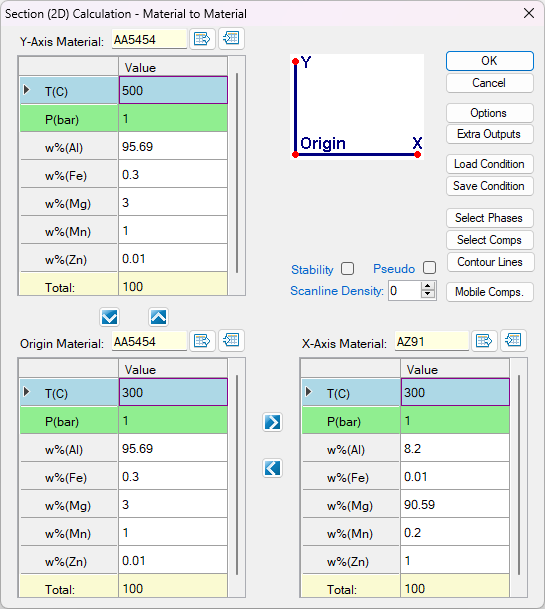 - Perform Material to Material calculations through the menu bar "PanPhaseDiagram → Section Calculation: Material to Material";