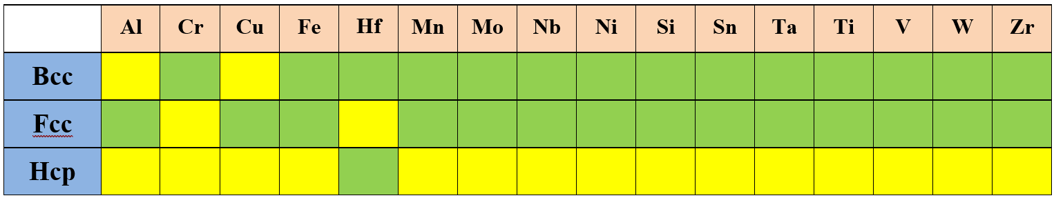 The self-diffusivity of an element is usually described by an analytical expression. For the stable crystal structures, these expressions can be obtained using the available experimental data, while those for the metastable/unstable states are usually estimated from those of the stable states. In the following tables, we use different color to represent different status: