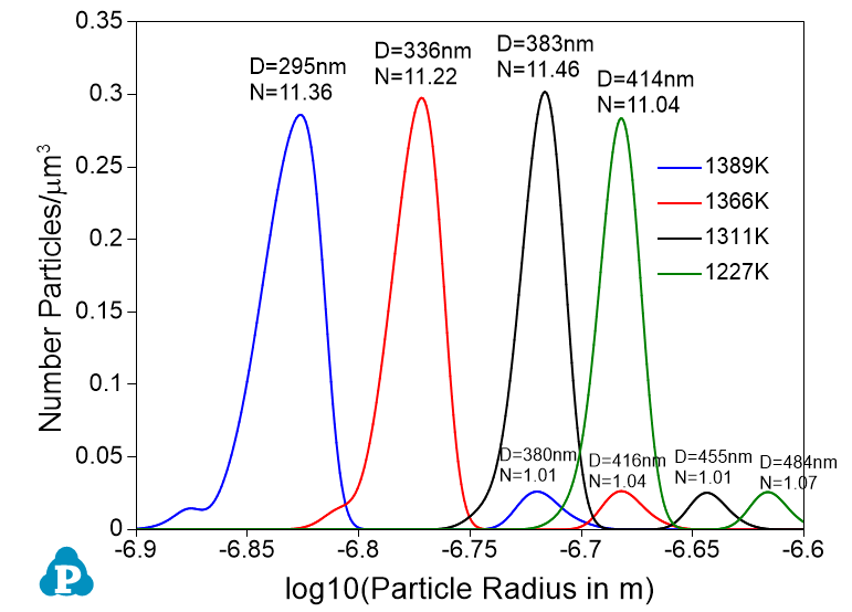 Figure 2.4: Simulated number densities of γ' particles when cooling to various temperatures with the cooling speed of 11K/m
