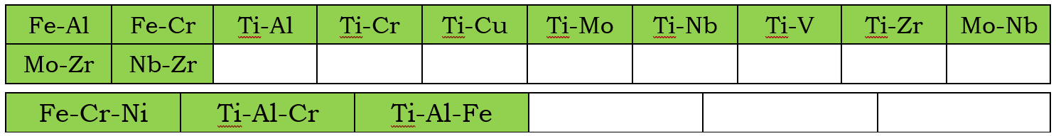 In addition to the assessed self-diffusivities shown above, the impurity diffusion data for all included elements in the current PanNoble2026_MB database are also assessed. In the following, the assessed chemical-diffusivity within the binary and ternary systems for the Bcc, Fcc, and Hcp phases are listed, respectively.