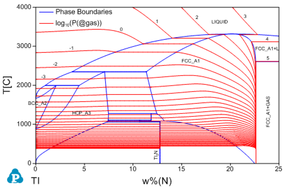 Figure 3.59: Contour diagrams of partial pressure of gas in the Ti-N system |