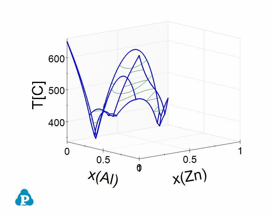 Figure 3.62: Liquidus projection in 3D of the Al-Mg-Zn ternary system