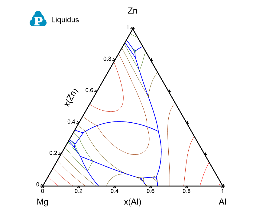 Figure 3.61: Liquidus projection in 2D of the Al-Mg-Zn ternary system