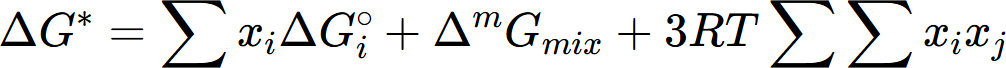 , Gibbs energy of activation of component i, and