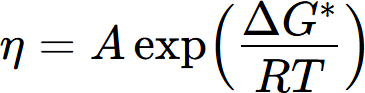 where V is the molar volume of the melt, h the Plank’s constant, N the Avogadro’s number. ΔG* the Gibbs energy of activation, and can be calculated by