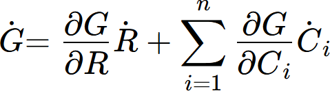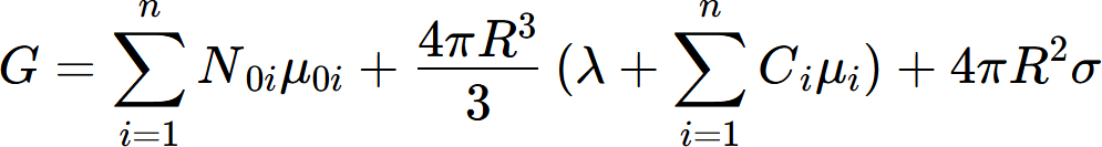 Let μ0i (i=1,...,n) be the chemical potential of component i in the matrix and μi (i=1,...,n) be the chemical potential ofcomponent i in the precipitate. All chemical potentials can be expressed as functions of the concentrations Ci. The total Gibbs energy of the system, G, is given by,