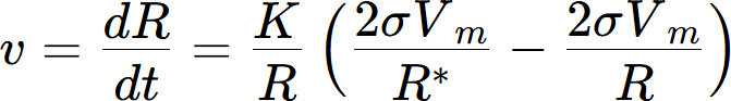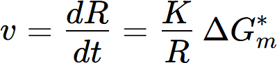 where R is the radius of the interface. R* is the radius of the critical nucleus and