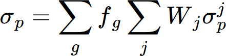 Where g is the size group defined by a particle size range and fg is the volume fraction of the group. j is the strengthening mechanism in each size group.