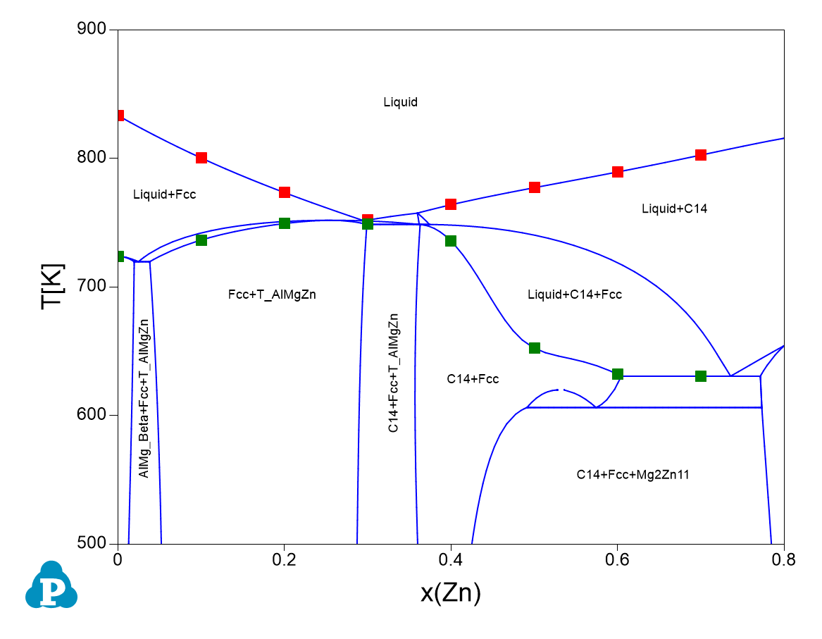In this batch file, a series of calculation points is defined using a loop. Specifically, the composition of Al varies from 0 to 0.8 with a step size of 0.1, Mg is fixed at 0.2, and Zn is set as the balance. In the Condition section, the parameter “Equilibrium_type” is set to “Liquidus”. Using this batch file, the liquidus temperatures for the series of alloy compositions defined by the composition loop can be calculated directly.
