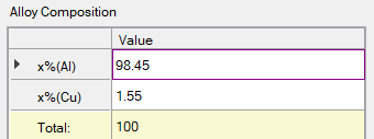 In the dissolution GUI, overall composition of an alloy is set in the following section (Figure 6.22):