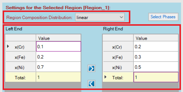 - Uniform: the composition of each element in the selected Region is a constant. When “uniform” is selected, a homogenous “Region Composition” can be set Figure 6.7.