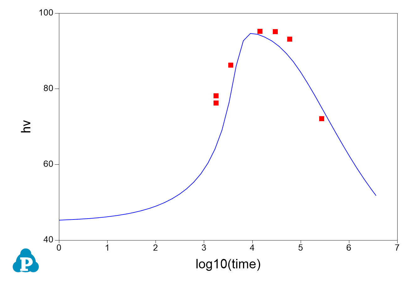 Figure 3.4.7: Calculated evolution of hardness with experimental data