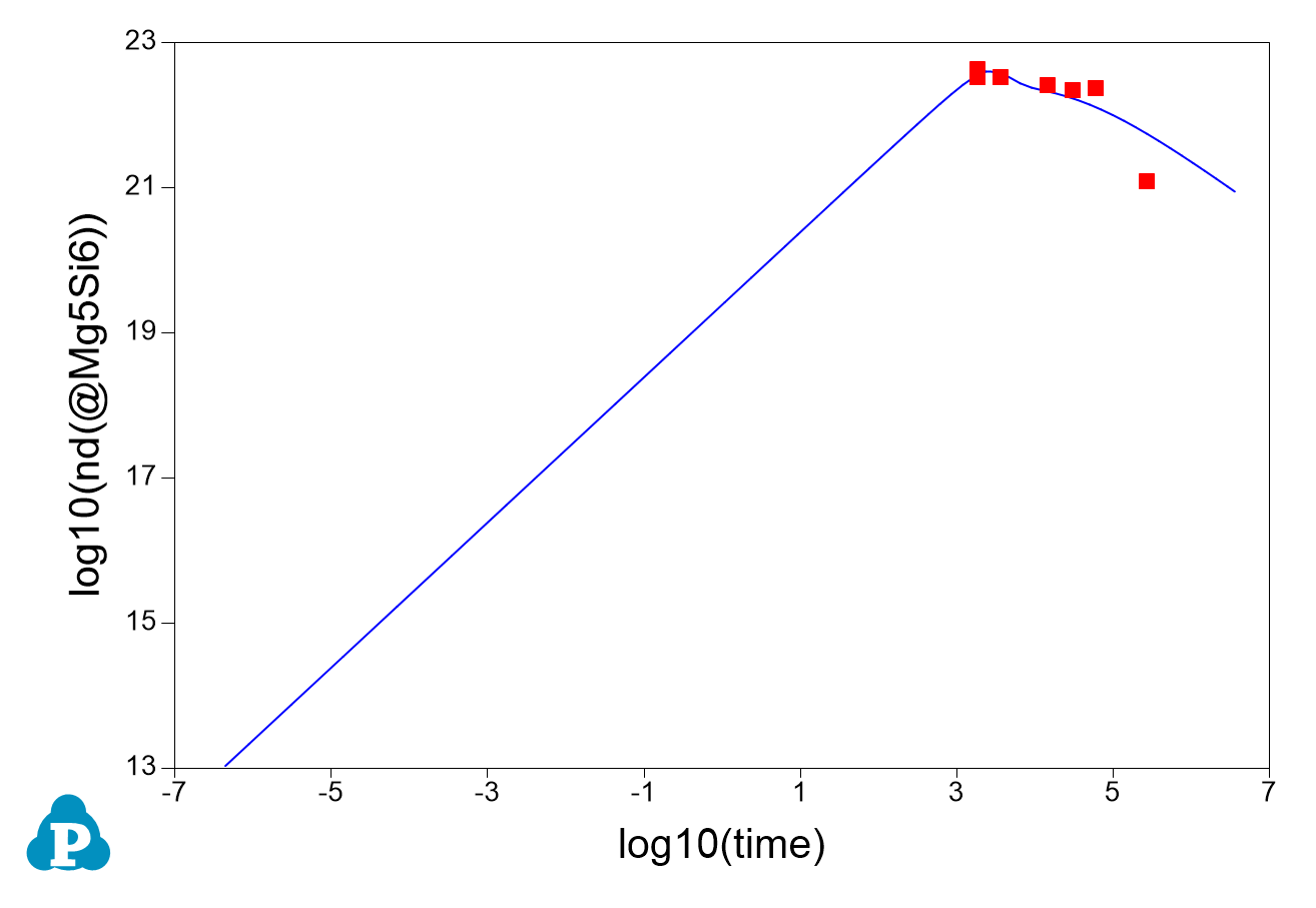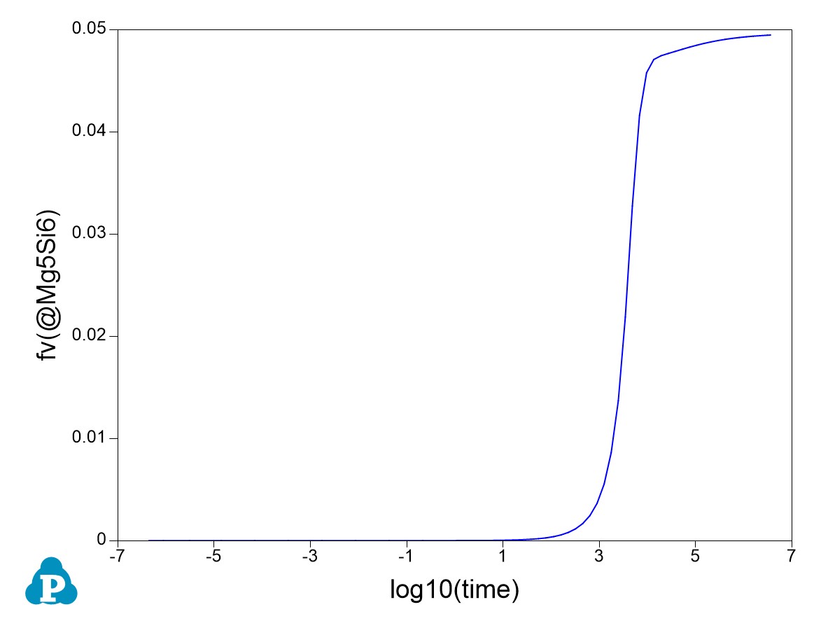 - The default plot shows the total volume fraction of the Mg5Si6 phase as a function of time shown in Figure 3.4.3.