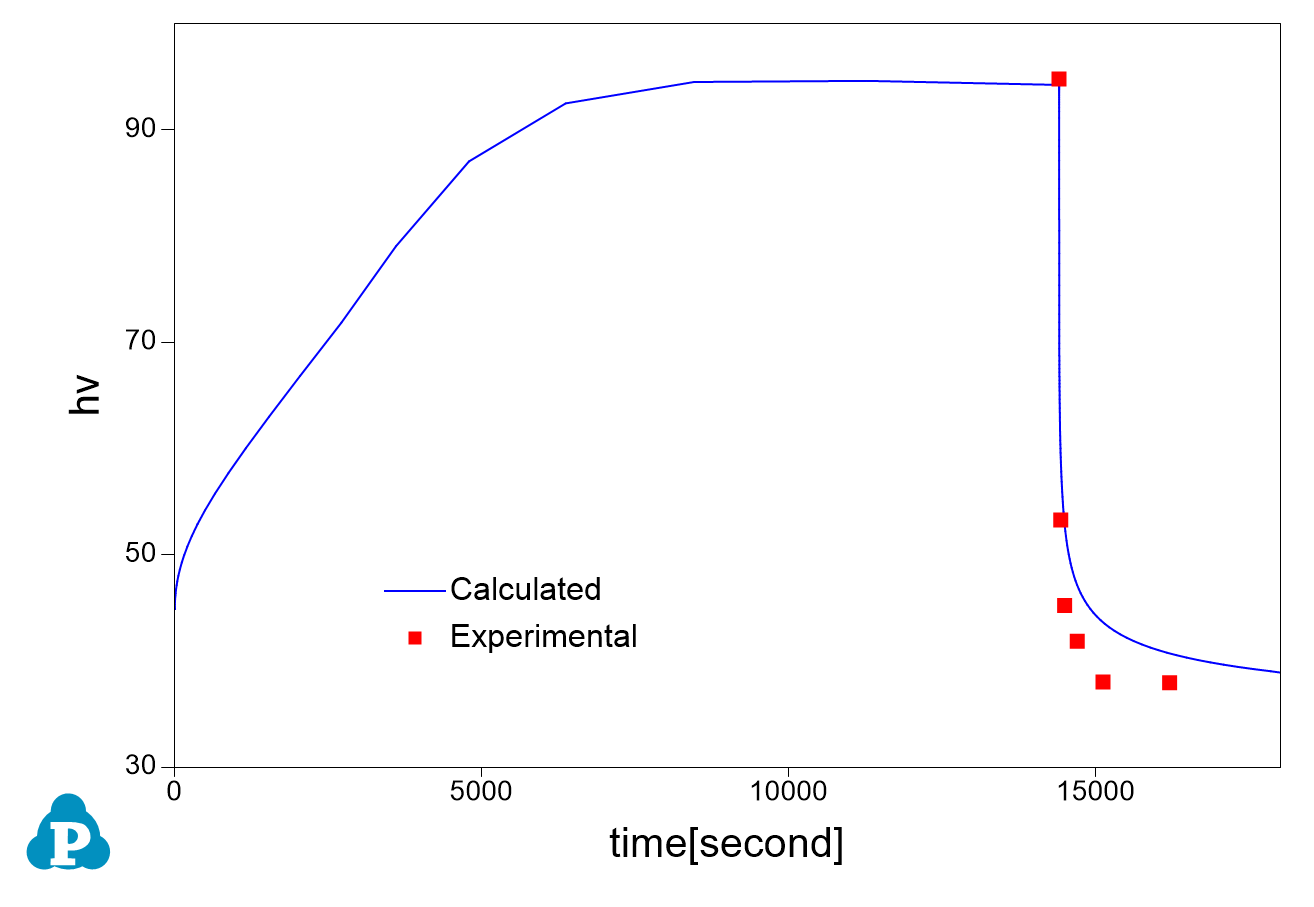 Figure 3.5.5: Calculated evolution of hardness with experimental data