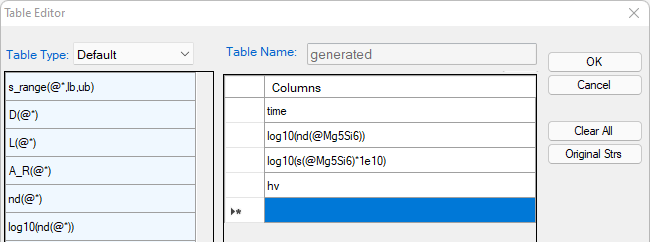 - Right Click on the Table node below the Graph and choose "Import Table from File", import table: AA6005-reheat_exp.dat;