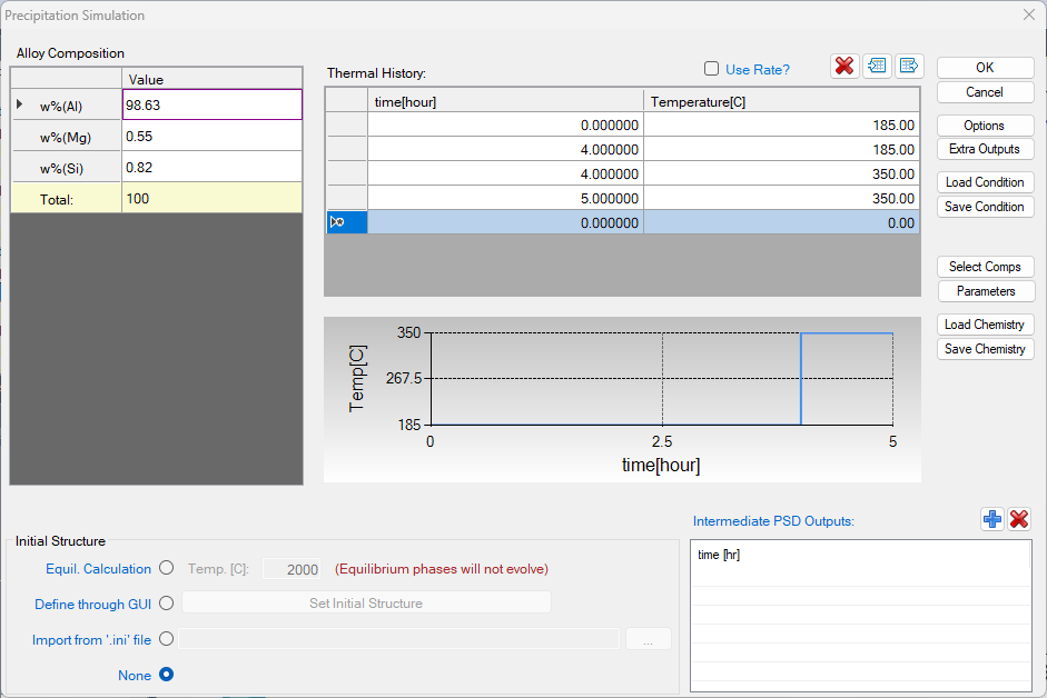 - Click on PanEvolution/PanPrecipitation on the menu bar and select "Load KDB or EKDB", then load the Al_Alloy.kdb, and select the AA6xxx alloy in the "Define Alloy Parameters" column;