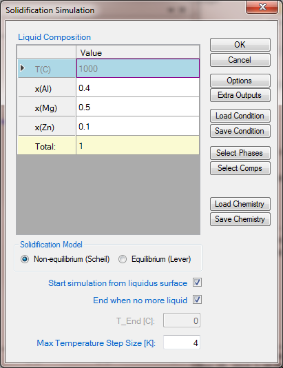 - Perform solidification simulation following the procedure in Pandat User’s Guide: Solidification Simulation;