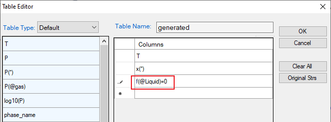 Figure 2.29: Generating a new table with a constraint of f(@Liquid)=0
