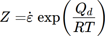 where p is an exponent, f(ζi ) a function of a parameter set ζi which often include strain rate, initial grain size and temperature. Z is the Zener-Hollomon parameter and is defined as