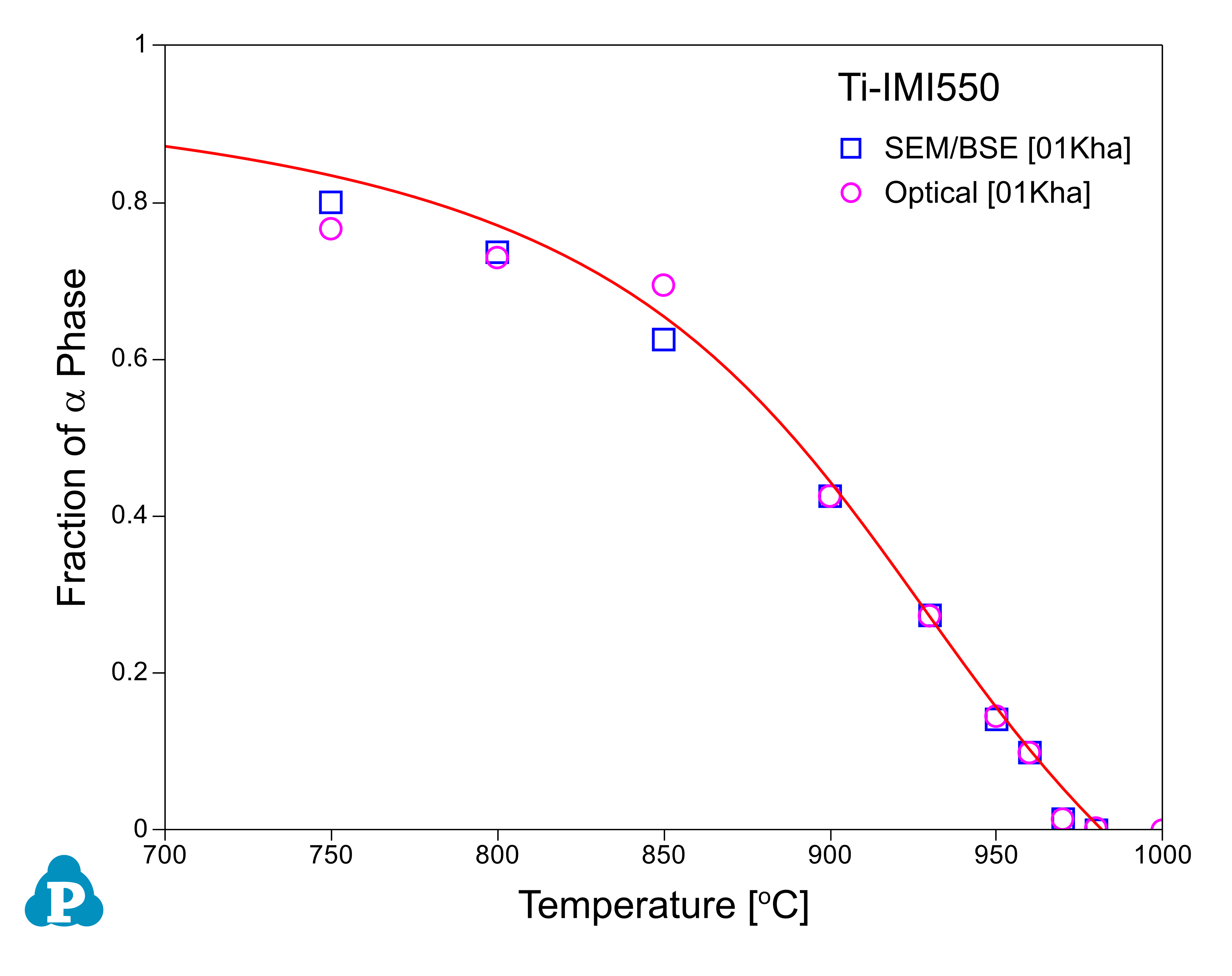 Figure 1.8: Alpha fraction curve for an IMI550 alloy with experimental data [2001Kha]