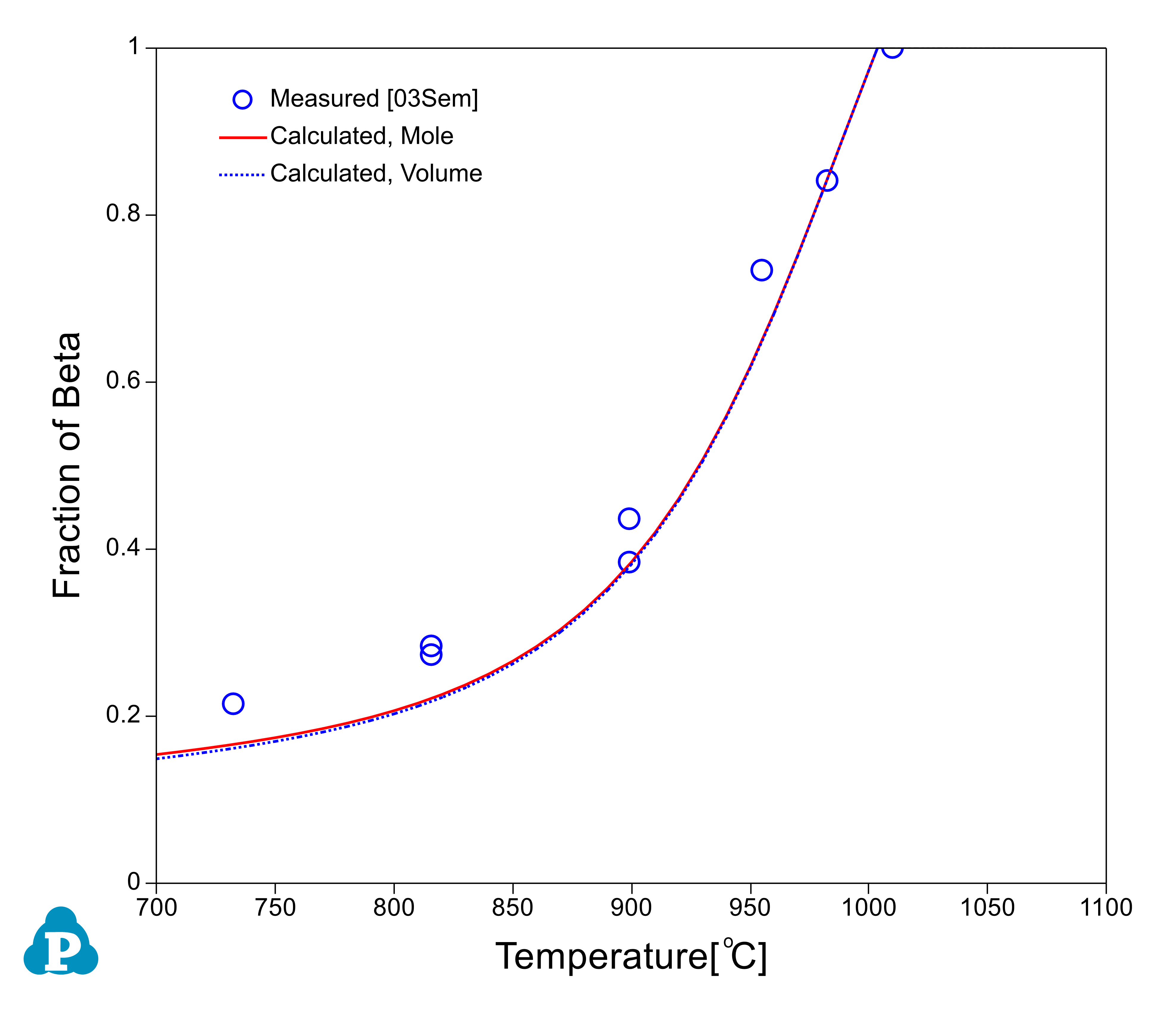 It should point out that the calculated phase fractions are mole fractions, while the measured values are volume fractions. However, since the molar volume of the a phase is very close to that of the β phase, the error induced due to the direct comparison between them is small. This can be seen in Figure 1.3 in which both the mole factions and the volume fractions of β phase are plotted.