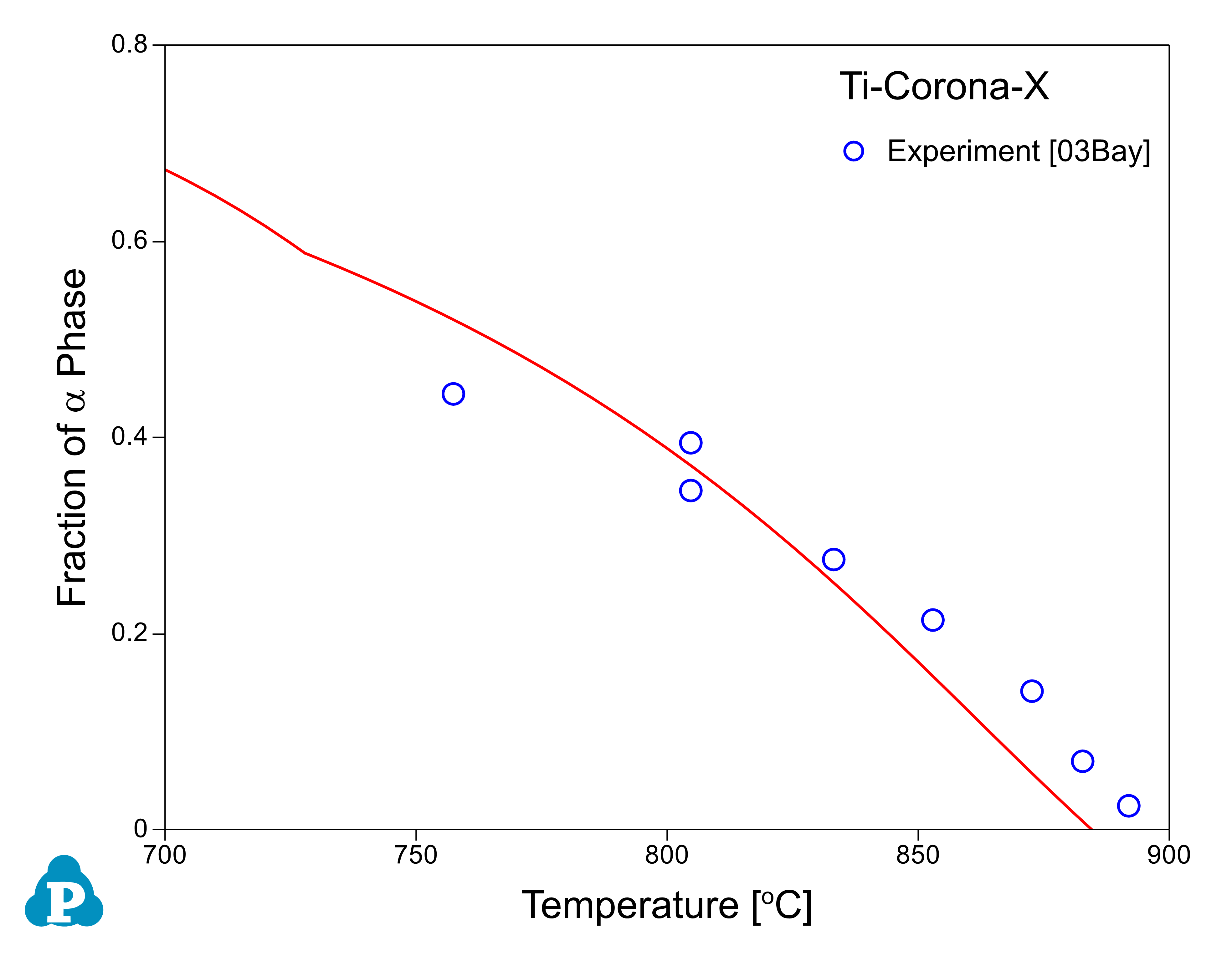 Figure 1.9: Alpha fraction curve for a Corona-X alloy with experimental data [2001Kha]