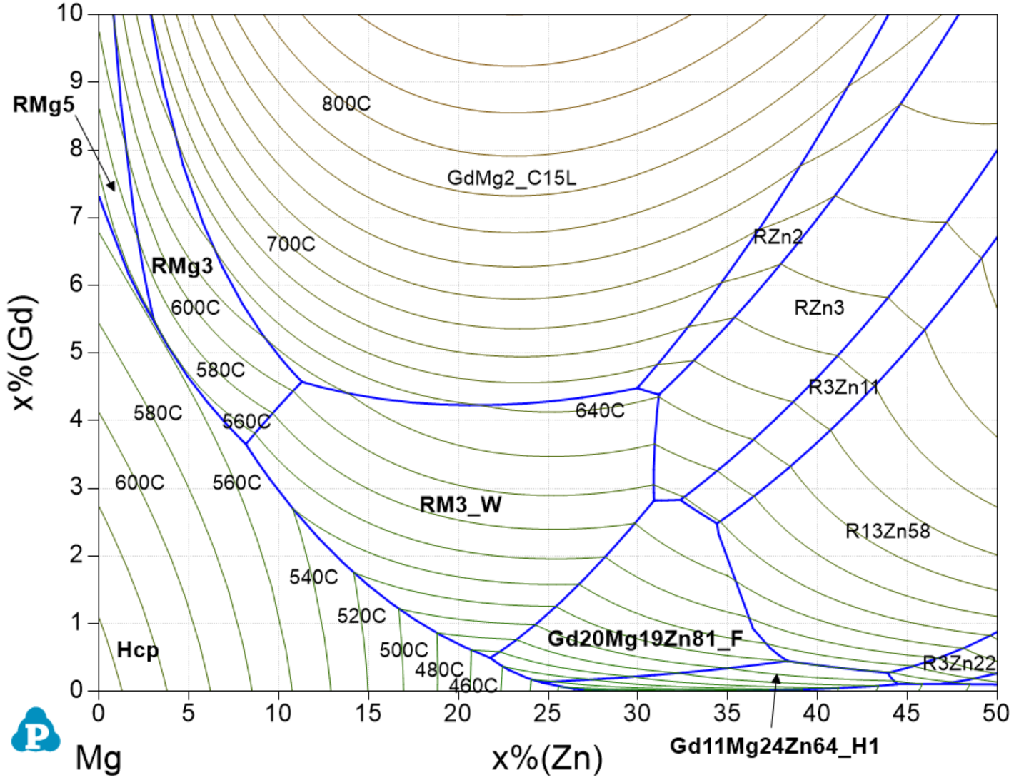 Advanced Mg alloys employing Long Period Stacking Order (LPSO) and icosahedral precipitate phases for superior properties have been studied in more depth recently. For the most important ternary alloy systems Mg-Y-Zn and Mg-Gd-Zn, these findings are used to advance the description in PanMg beyond the previous knowledge [2015Sch2, 2015Gro].