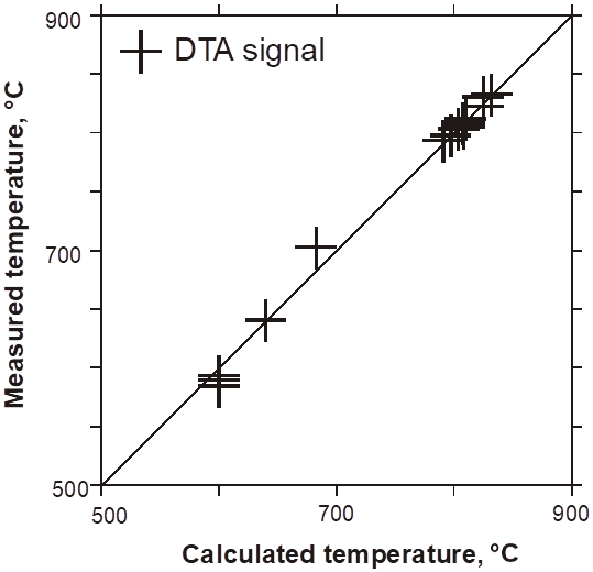 For the reliability of the calculated phase diagrams the fitting of the invariant temperatures are of paramount importance. Since the measured temperatures of the invariant reactions are not affected by super-cooling related problems, these nonvariant data are perfect criteria for comparison of experimental with calculated data (as shown in Figure 1.1).