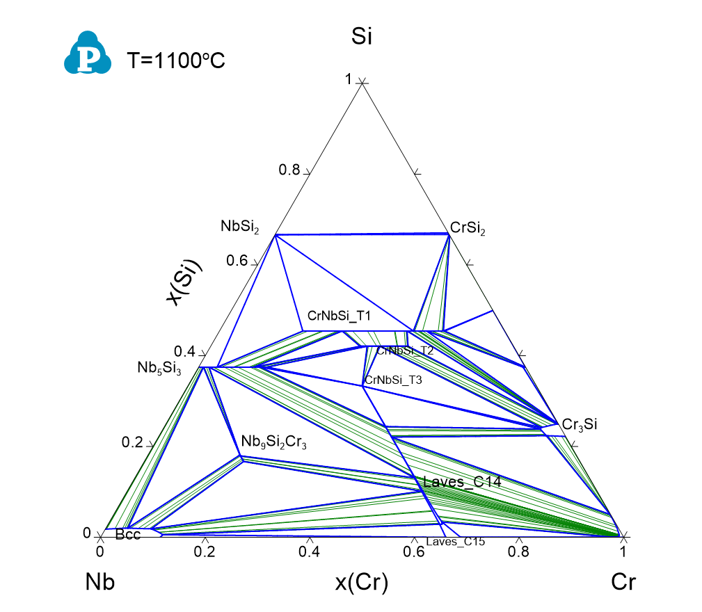 Figure 1.5: Calculated isothermal section of Nb-Cr-Si at 1100°C
