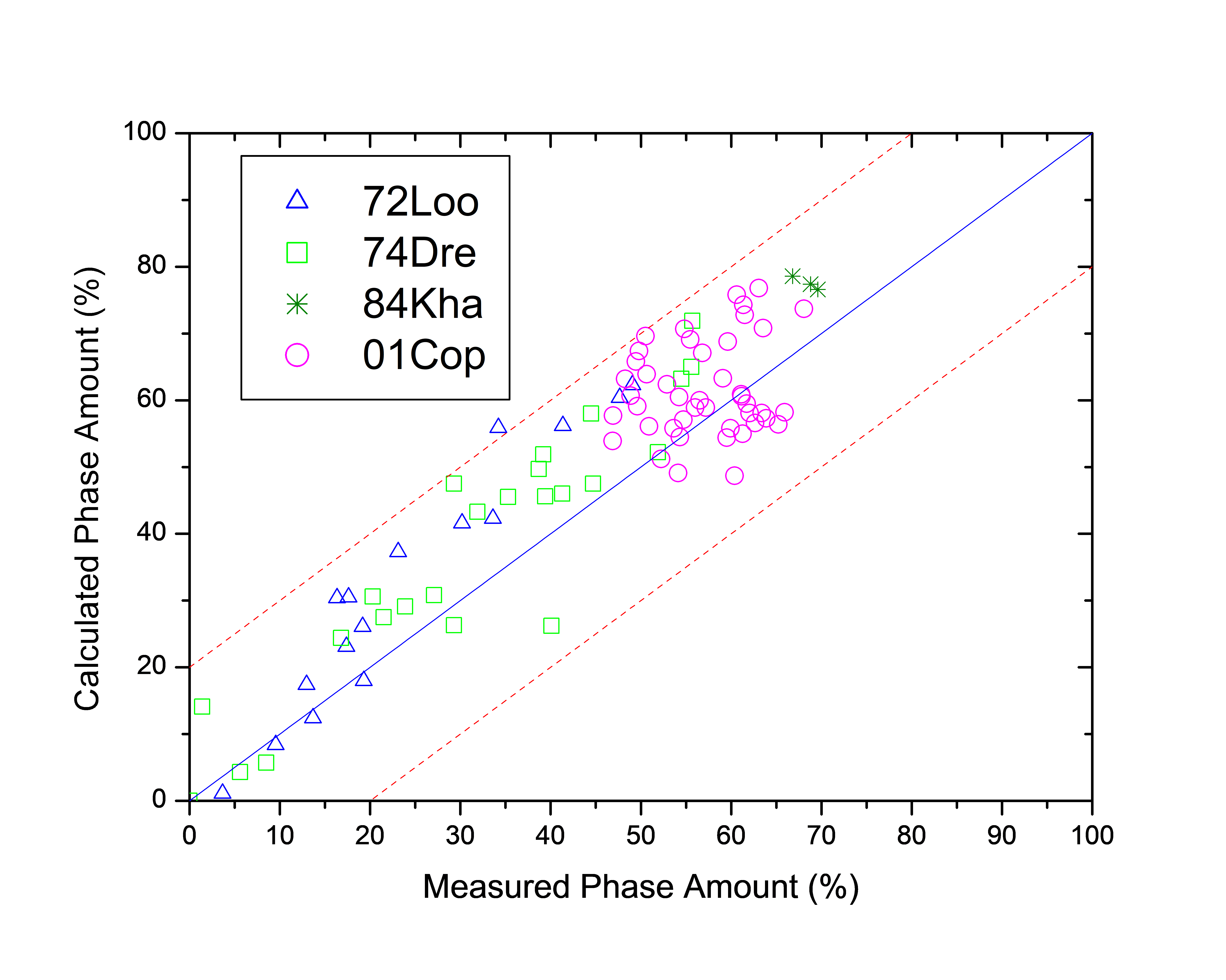 Figure 1.3: Comparison between the calculated and experimentally measured amounts of the γ' phase